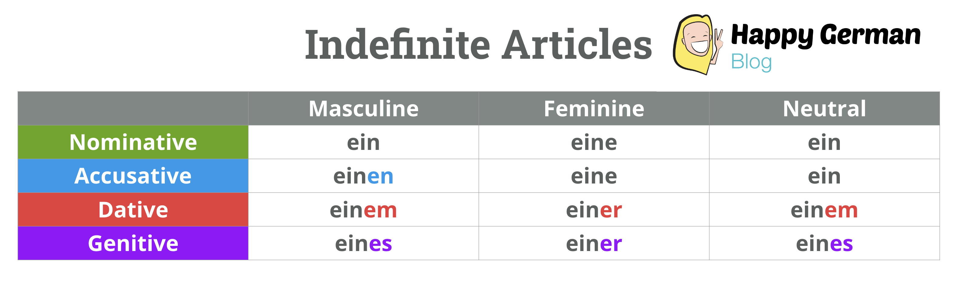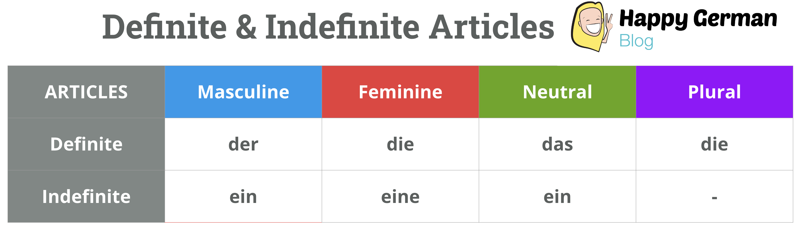 Check out the table below with the German definite and indefinite articles.